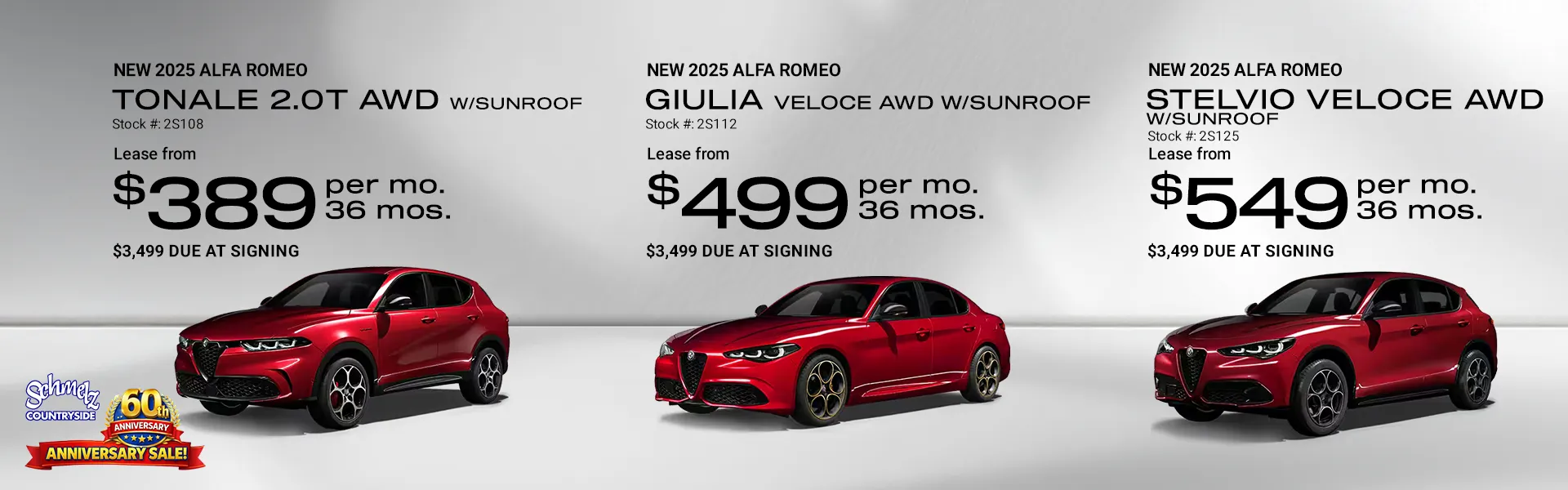 Schmelz Countryside Alfa Romeo in Maplewood, MN caters to the needs of each individual customer with premier customer service. We know that you have high expectations and we enjoy the challenge of meeting and exceeding those standards each and every time. Allow us to demonstrate our commitment to excellence! Our experienced and factory-certified staff is eager to share its knowledge and enthusiasm with you. We encourage you to learn more about our dealership, schedule a test drive and investigate financing options. You can also request more information about a vehicle using our online form or by calling (651) 867-3222.